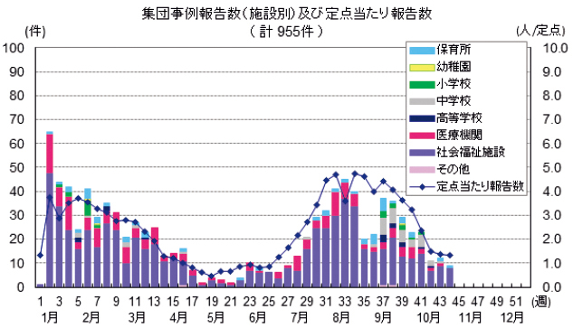 図3 新型コロナウイルス感染症の集団発生事例数:2025年(東京都)