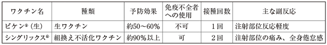 表1 日本で利用可能な帯状疱疹予防ワクチン