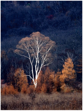 奥日光の小田代ヶ原湿原に一本の白樺の木が立っている。標高1500メートルのこの地に、1981年(昭和56年)から6年間、東京から移住して逗留したカメラマンがいた。その写真家宮嶋康彦氏は、「この一本の白樺の木に毎日出会い、雨の日も雪の日も向き合い、なにがしかの平安を持ち帰ることができた。あらゆる角度から眺めた。遊歩道にしゃがんで一日そこで過ごす日もあった」と当時を振り返っている。