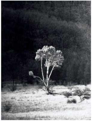 これほどまでに想われ続けた白樺は幸せ者である。宮嶋氏は2006年発行の著書『脱「風景写真」宣言』の中に、1986年6月撮影の白樺の木を載せている。それが写真1である。