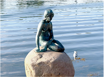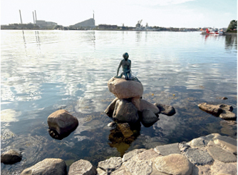 観光のスタートはバスでコペンハーゲンの市内観光です。まずは有名な人魚姫の像ですが(写真4、5)、思ったより小さく「世界の3大がっかり」とも言われています。岸から少し離れた石の上にあり触れることができないようになっていて、午前中は逆光なためあまり良い写真は撮れませんでした。
