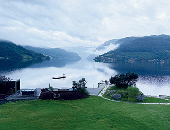 その後は3時間のバス移動で、有名なハダンゲルフィヨルド沿いを走り、その途中には「ステインダルス」という立派な大きな滝もありました(写真11)。夕刻にフィヨルドを一望できるホテルに到着しました。写真12はホテルの窓から雄大かつ荘厳な夕暮れのフィヨルドです。この時期の北欧は夜9時くらいまで明るかったです。