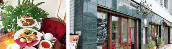 NEXT21からほど近く、寄居町交差点に見えてくる優雅な佇まいの英国紅茶サロンです。落ち着いた雰囲気の店内には緑が多く、クラシックを聴きながらゆったりとした時間を過ごせます。