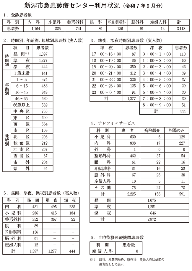 < 新潟市急患診療センター利用状況(令和7年8月分)