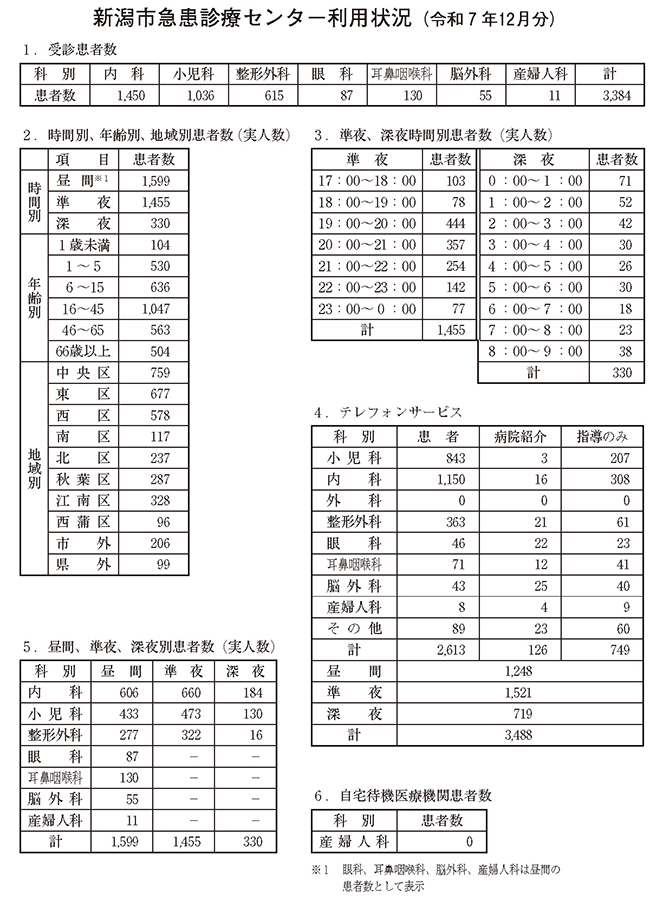 新潟市急患診療センター利用状況(令和8年1月分) >
