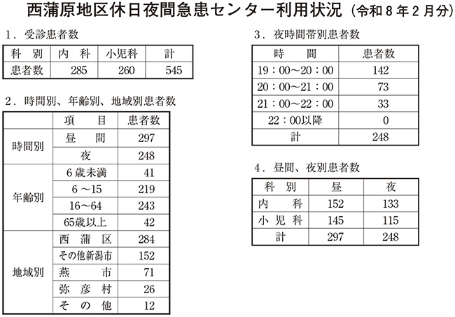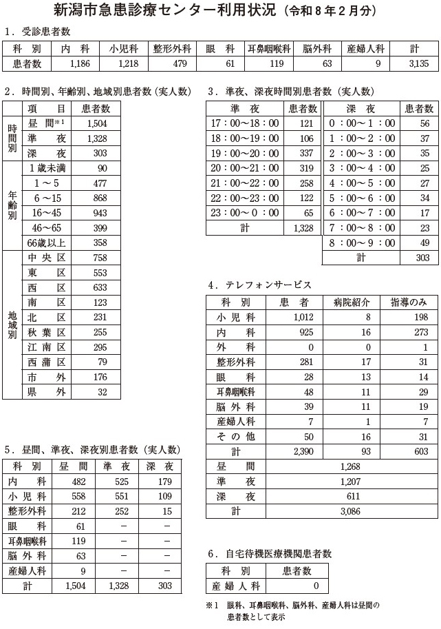 新潟市急患診療センター利用状況(令和8年2月分)